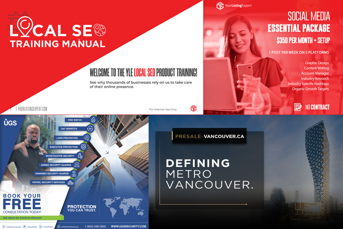 We are the experts that have worked on all types of design campaigns for small to franchise-sized businesses. Our ability to execute your company’s vision in a logo, while using the right colour palette and typography for your business cards or marketing materials, is crucial to a successful branding campaign.